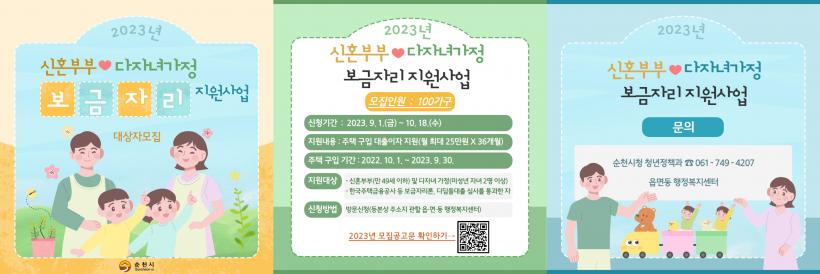 [°ø°£´º½º = ¾ÈÀ翵±âÀÚ] ¼øÃµ½Ã(½ÃÀå ³ë°ü±Ô)´Â ½ÅÈ¥ºÎºÎ․´ÙÀڳడÁ¤ÀÇ ÁְžÈÁ¤À» À§ÇØ º¸±ÝÀÚ¸® »ç¾÷ ´ë»óÀÚ¸¦ 9¿ù 1ÀϺÎÅÍ 10¿ù 18ÀϱîÁö ¸ðÁýÇÑ´Ù°í ¹àÇû´Ù.