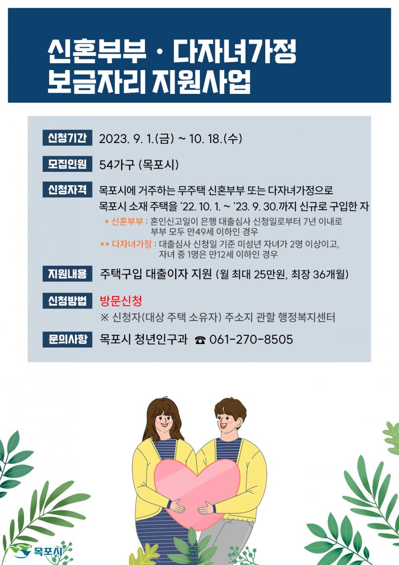 [°ø°£´º½º = ±è¿ëÁø±âÀÚ ] ¸ñÆ÷½Ã°¡ ¹«ÁÖÅà ½ÅÈ¥ºÎºÎ¿Í ´ÙÀڳడÁ¤ÀÇ Áְźñ ºÎ´ãÀ» ´ú¾îÁÖ±â À§ÇØ ½ÅÈ¥ºÎºÎ․´ÙÀڳడÁ¤ º¸±ÝÀÚ¸® Áö¿ø»ç¾÷ ´ë»óÀÚ 54°¡±¸¸¦ ¸ðÁýÇÑ´Ù.
