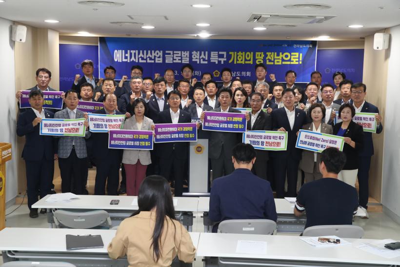 [°ø°£´º½º = ±è¼ö±Ù±âÀÚ ] Àü¶ó³²µµÀÇȸ ÀÇ¿ø Àϵ¿Àº 9¿ù 5ÀÏ µµÀÇȸ ºê¸®Çη뿡¼ Áß¼Òº¥Ã³±â¾÷ºÎÀÇ ±Û·Î¹ú Çõ½Å Ư±¸ °ø¸ð¿¡ Àü³²µµ¿¡¼ Áغñ ÁßÀÎ ¡®¿¡³ÊÁö½Å»ê¾÷ ±Û·Î¹ú Çõ½ÅƯ±¸¡¯ ÁöÁ¤À» Ã˱¸ÇÏ´Â ¼º¸íÀ» ¹ßÇ¥Çß´Ù.