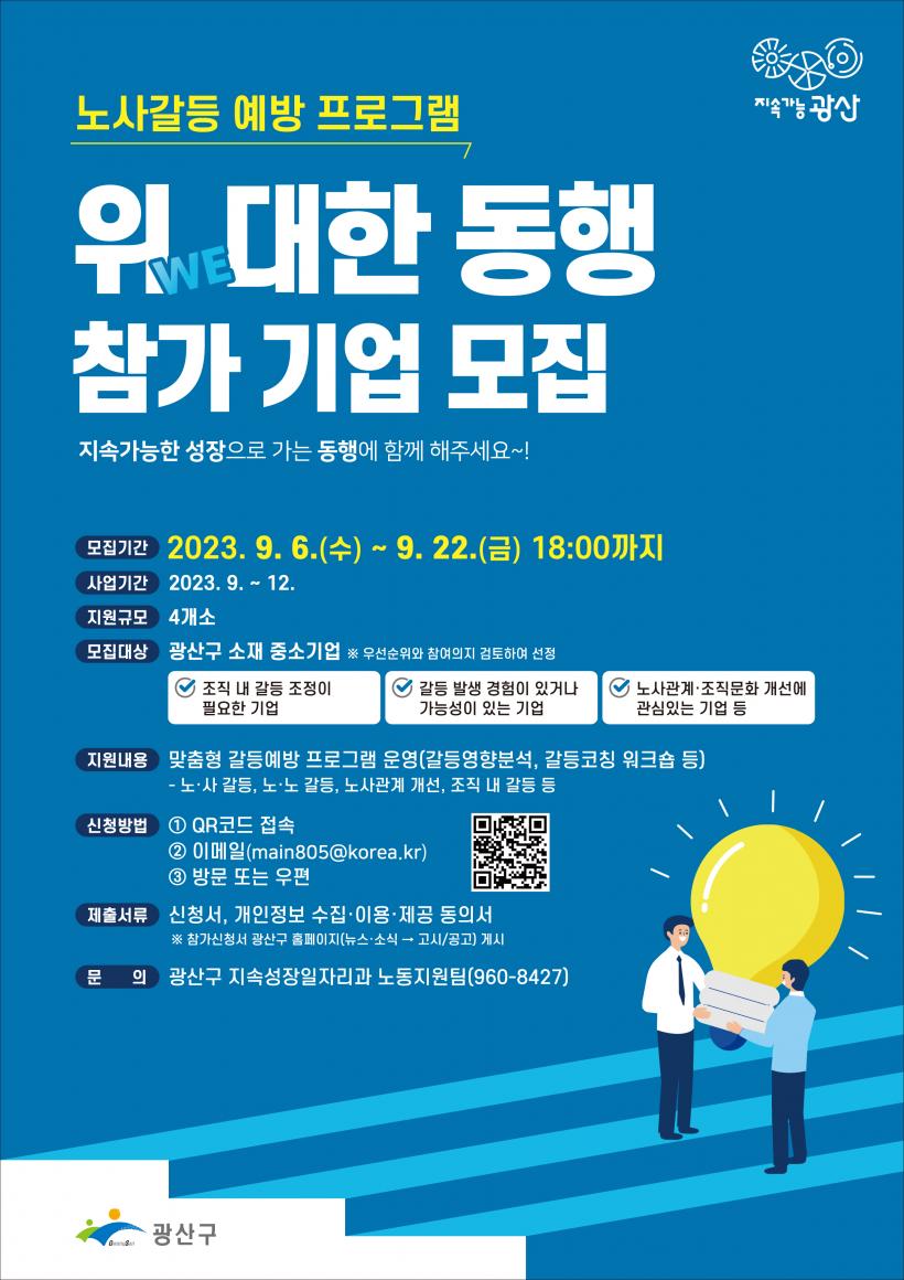 ±¤»ê±¸¿¡ ¼ÒÀçÇÑ Áß¼Ò±â¾÷ Áß Á¶Á÷ ³» °¥µî Á¶Á¤ÀÌ ÇÊ¿äÇÑ ±â¾÷, °¥µî ¹ß»ý °æÇèÀÌ ÀÖ´Â ±â¾÷, ³ë»ç°ü°è °³¼±¿¡ °ü½ÉÀÌ ÀÖ´Â ±â¾÷ µîÀ» ´ë»óÀ¸·Î 22ÀϱîÁö Âü¿©±â¾÷À» ¸ðÁýÇÑ´Ù.