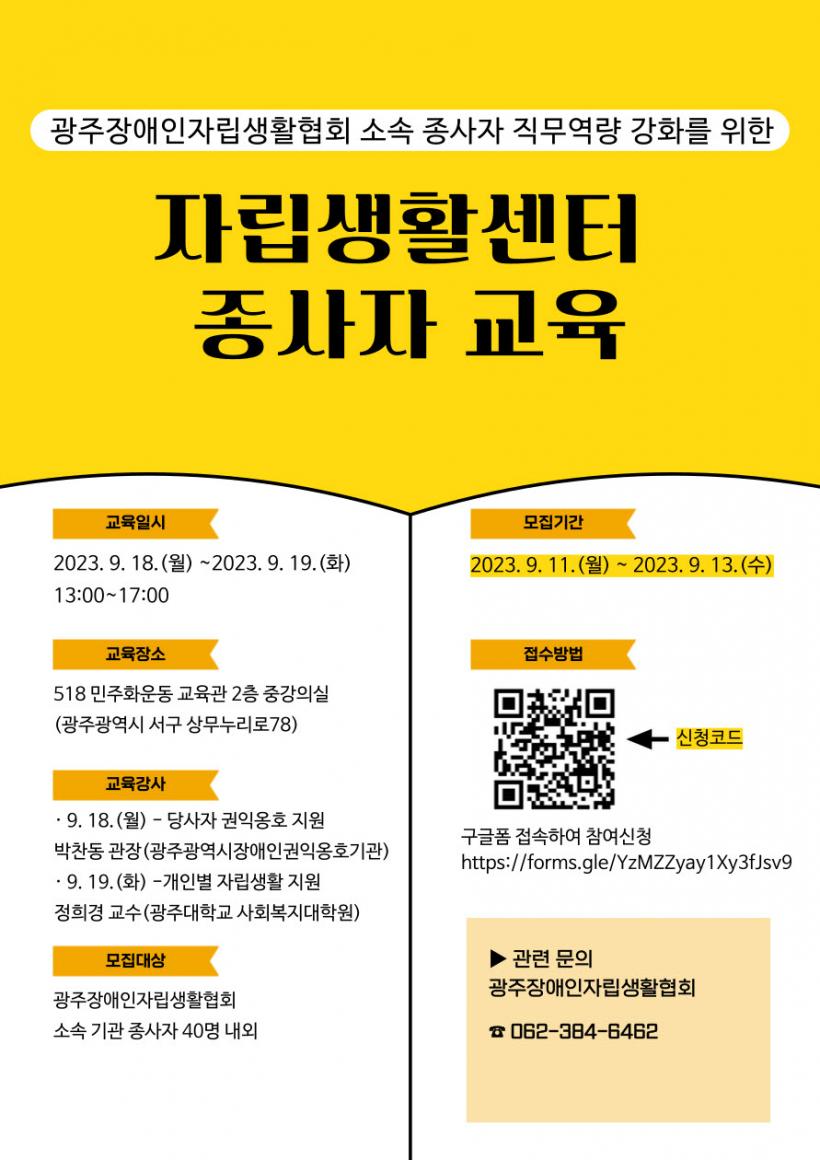[°ø°£´º½º = ±è¼ö±Ù±âÀÚ] ±¤ÁÖ±¤¿ª½ÃÀå¾ÖÀÎÁ¾ÇÕÁö¿ø¼¾ÅÍ¿Í ±¤ÁÖÀå¾ÖÀÎÀÚ¸³»ýȰ¼¾ÅÍÇùȸ´Â 18~19ÀÏ 5¡¤18¹ÎÁÖȿ ±³À°°ü¿¡¼ Àå¾ÖÀÎÀÚ¸³»ýȰÁö¿ø¼¾ÅÍ(ÀÌÇÏ ÀÚ¸³»ýȰ¼¾ÅÍ) Á¾»çÀÚ 40¸íÀ» ´ë»óÀ¸·Î Á÷¹«¿ª·® °È±³À°À» ½Ç½ÃÇÑ´Ù.
