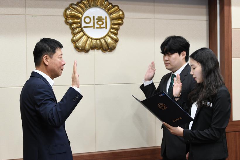 [°ø°£´º½º = ¾ÈÀ翵±âÀÚ] ¼øÃµ½ÃÀÇȸ(ÀÇÀå Á¤º´È¸)´Â 25ÀÏ ÀÇȸ ¼ÒȸÀǽǿ¡¼ Àλç±Ç µ¶¸³ ÈÄ Ã³À½À¸·Î ½Å±Ô°ø¹«¿ø 8¸í¿¡°Ô ÀÓ¿ëÀåÀ» ¼ö¿©Çß´Ù.