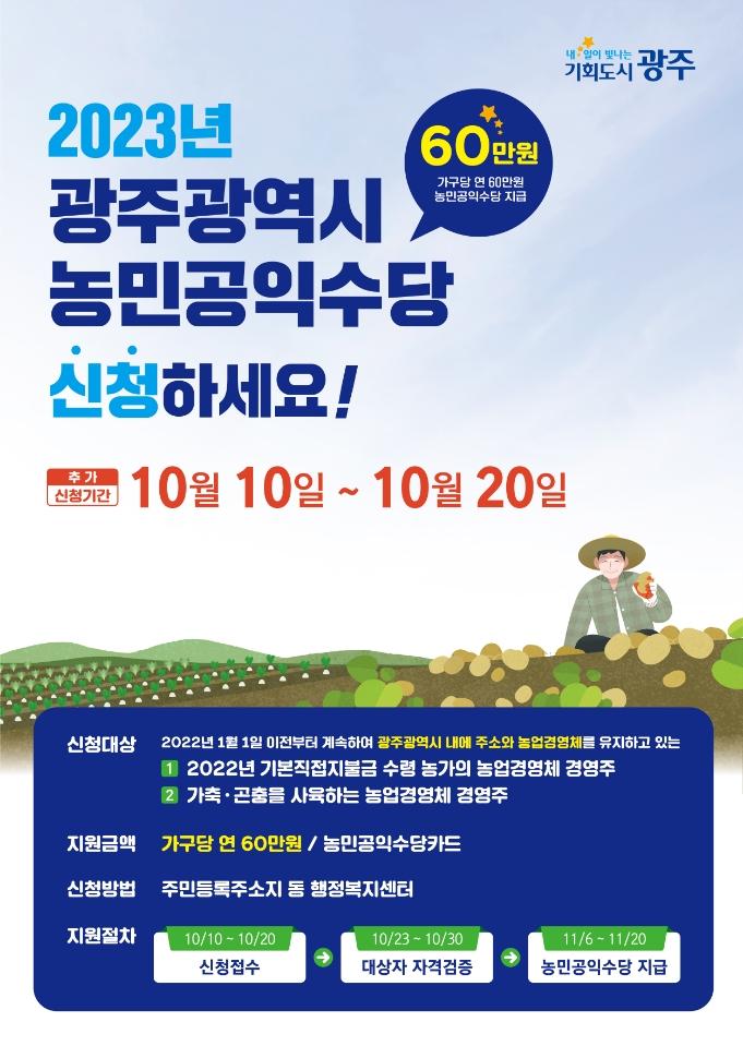 ±¤ÁÖ±¤¿ª½Ã(½ÃÀå °±âÁ¤)´Â ³ó¹Î°øÀͼö´çÀ» ¹Ìó ½ÅûÇÏÁö ¸øÇÑ ³ó°¡¸¦ Áö¿øÇϱâ À§ÇØ 10ÀϺÎÅÍ 20ÀϱîÁö 10Àϰ£ Ãß°¡ Á¢¼ö¸¦ ÁøÇàÇÑ´Ù.