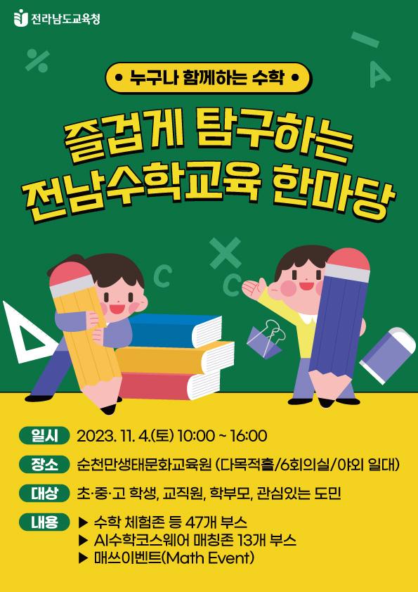 ¡®´©±¸³ª ÇÔ²²ÇÏ´Â ¼öÇС¯À» ÁÖÁ¦·Î ¿¸®´Â À̹ø Çà»ç´Â ¿ÃÇØ Àü³²¼öÇб³À°ÀÇ ¼º°ú¸¦ °øÀ¯Çϰí, µðÁöÅÐ ±â¹ÝÀÇ Àü³² ¼öÇб³À° Á¤Ã¥À» ÇöÀå¿¡ ¾ÈÂø½Ã۱â À§ÇØ ¸¶·ÃµÆ´Ù.