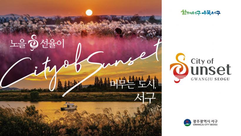 °ü±¤½½·Î°Ç ¡®³ëÀ»&¼±À²ÀÌ ¸Ó¹«´Â µµ½Ã, ¼±¸¡¯´Â Áö¿ªÀ» ´ëÇ¥ÇÏ´Â °ü±¤ÀÚ¿øÀ¸·Î ¼Õ²ÅÈ÷´Â ¼Ã¢µé³è ³ëÀ»°ú À½¾Ç¹®Èµµ½Ã ¼±¸ÀÇ À̹ÌÁö¸¦ °Á¶ÇÏ¸é¼ ¡®º¸°í Áñ±â¸ç ¸Ó¹«´Â¡¯ °ü±¤µµ½Ã µµ¾àÀÇ ÀÇÁö¸¦ ´ã¾Æ³Â´Ù. ¾Æ¿ï·¯ °ü±¤BIÀÇ ±âº» »ö»óµµ ³ëÀ»À» »ó¡ÇÏ´Â ºÓÀº °è¿·Î Á¤ÇßÀ¸¸ç, °ü±¤BI¿Í ½½·Î°Ç ¿µ¹®Ç¥±â´Â ¡®City of Sunset, Gwangju Seogu¡¯´Ù.