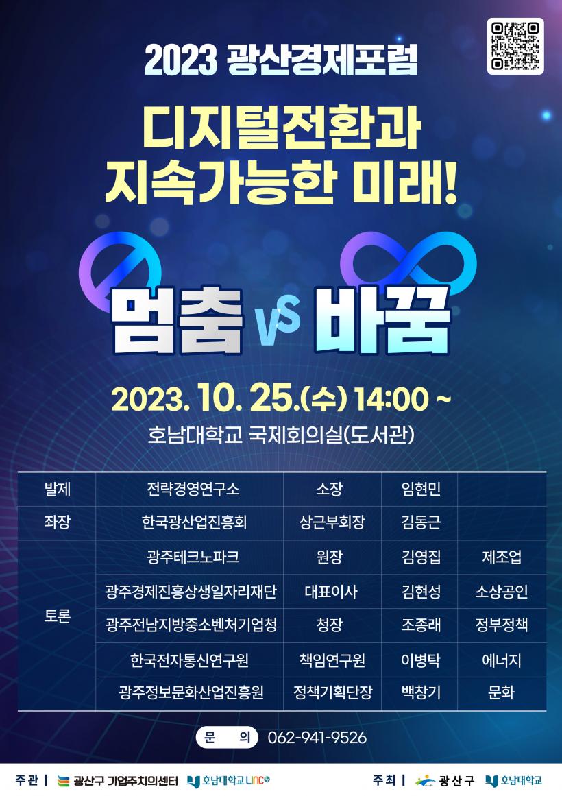 [°ø°£´º½º = ±è´ë¿µ±âÀÚ] ±¤ÁÖ ±¤»ê±¸(±¸Ã»Àå ¹Úº´±Ô), È£³²´ëÇб³(ÃÑÀå ¹Ú»óö)°¡ ÁÖÃÖÇϰí, ±¤»ê±¸±â¾÷ÁÖÄ¡ÀǼ¾ÅÍ(¼¾ÅÍÀå ±âȸºÀ), È£³²´ëÇб³ LINCT »ç¾÷´Ü(´ÜÀå ¾ç½ÂÇÐ)ÀÌ ÁÖ°üÇÏ´Â ¡®2023³â ±¤»ê°æÁ¦Æ÷·³(°ø°³ Åä·Ðȸ)¡¯ÀÌ ¿À´Â 25ÀÏ ¿ÀÈÄ 2½Ã È£³²´ëÇб³ ±¹Á¦È¸Àǽǿ¡¼ µðÁöÅÐÀüȯ°ú Áö¼Ó°¡´ÉÇÑ ¹Ì·¡¸¦ ÁÖÁ¦·Î °³ÃֵȴÙ.