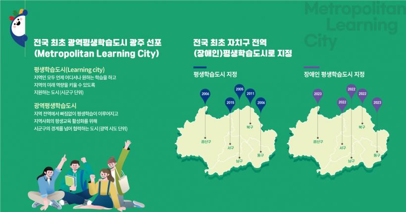 ±¤Áֽô 5°³ ÀÚÄ¡±¸, ±¤Áֽñ³À°Ã», ±¤ÁÖÀÎÀçÆò»ý±³À°ÁøÈï¿ø°ú ÇÔ²² Àü±¹ ÃÖÃÊ 5°³ ÀÚÄ¡±¸ ¸ðµÎ Æò»ýÇнÀ µµ½ÃÀÌÀÚ Àå¾ÖÀÎ Æò»ýÇнÀµµ½Ã·Î ÁöÁ¤µÈ Àü±¹ ÃÖÃÊ ¡®±¤¿ªÆò»ýÇнÀµµ½Ã¡¯ÀÓÀ» È«º¸ÇÒ °èȹÀÌ´Ù.
