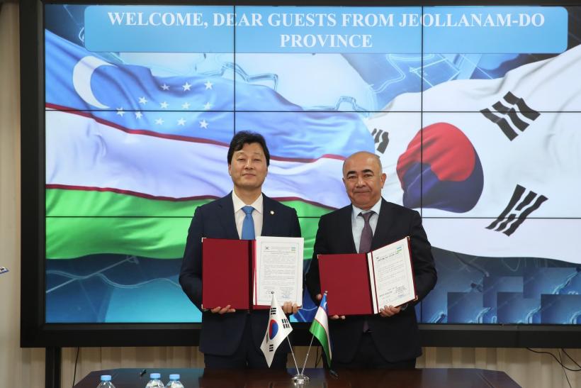 ¼µ¿¿í ÀÇÀåÀº ¡°10³â ¸¸¿¡ ÀÌ·ç¾îÁø À̹ø ¹æ¹®À» °è±â·Î Àü¶ó³²µµ¿Í ¿ìÁŰ½ºÅº ÁÖ¿ä Áö¿ª°úÀÇ ¿ìÈ£ Çù·Â°ü°è¸¦ °ÈÇÏ°í ½ÃÀå ¼±Á¡À» À§ÇÑ ±³µÎº¸¸¦ ¸¶·ÃÇß´Ù.¡±¸ç, ¡°Æ¯È÷ ¿¬°£ 5%´ëÀÇ ³ôÀº °æÁ¦¼ºÀå·üÀ» º¸ÀÌ¸ç °¡ÆÄ¸£°Ô ¼ºÀåÇϰí ÀÖ´Â ¿ìÁŰ½ºÅºÀº Àü¶ó³²µµ¿¡ ±âȸÀÇ ¶¥ÀÌ µÉ ¼ö ÀÖÀ¸¹Ç·Î, ¾ÕÀ¸·Î ´Ù°¢ÀûÀÎ ºÐ¾ß¿¡¼ Àü³²µµÀÇȸ¿Í ¿ìÁ Áö¹æÁ¤ºÎ ¹× ÀÇȸ¿Í ±³·ù ÃËÁø ¹æ¾ÈÀ» ¸ð»öÇϵµ·Ï ÇϰڴÙ.¡±°í ¸»Çß´Ù.