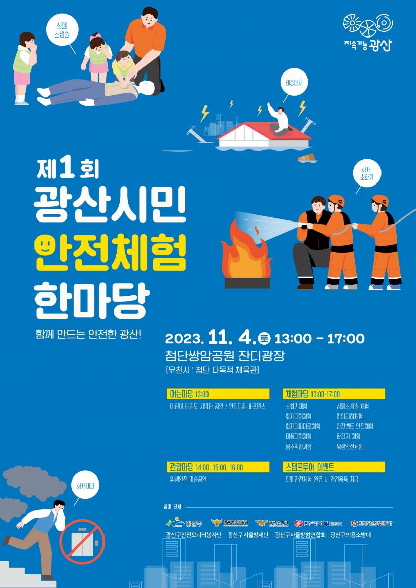 [°ø°£´º½º = ±è´ë¿µ±âÀÚ] ±¤ÁÖ ±¤»ê±¸(±¸Ã»Àå ¹Úº´±Ô)°¡ ¿À´Â 11¿ù 4ÀÏ ½Ö¾Ï±Ù¸°°ø¿ø Àܵð±¤Àå¿¡¼ ´Ù¾çÇÑ Àç³ ¹× ¾ÈÀü»ç°í ´ëó ¹æ¹ýÀ» ¹è¿ï ¼ö ÀÖ´Â ±¤»ê½Ã¹Î¾ÈÀüüÇèÇѸ¶´çÀ» °³ÃÖÇÑ´Ù.