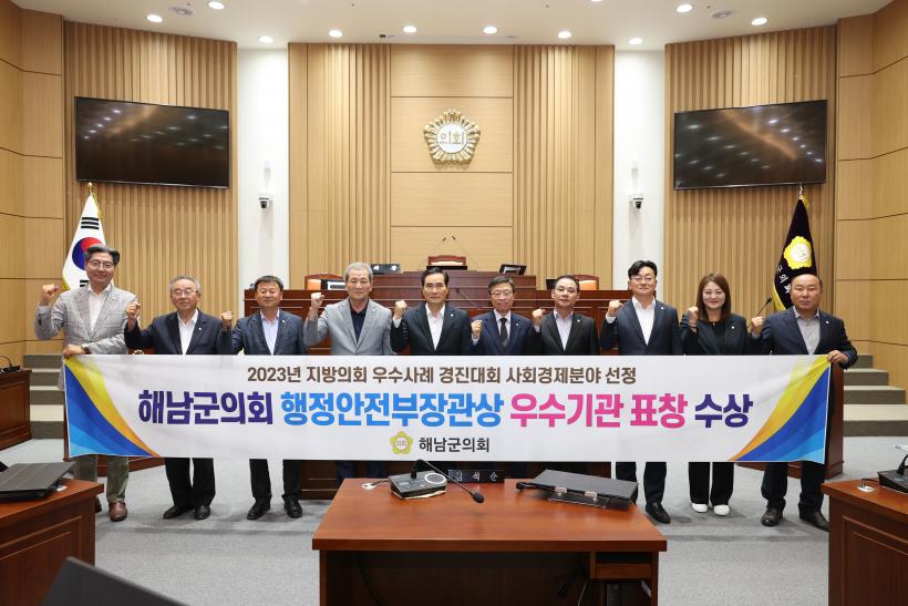 [°ø°£´º½º = Çѵ¿¼ø±âÀÚ] ÇØ³²±ºÀÇȸ(ÀÇÀå ±è¼®¼ø)´Â 2023³â Áö¹æÀÇȸ ¿ì¼ö»ç·Ê °æÁø´ëȸ »çȸ°æÁ¦ ºÐ¾ß ÇàÁ¤¾ÈÀüºÎÀå°ü»ó ¿ì¼ö±â°ü ǥâÀ» ¼ö»óÇß´Ù°í Áö³ 6ÀÏ ¹àÇû´Ù.