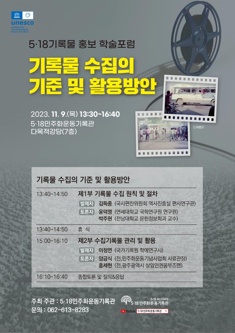 [°ø°£´º½º = ±è¼ö±Ù±âÀÚ] 5¡¤18¹ÎÁÖȿ±â·Ï°üÀº 9ÀÏ 7Ãþ ´Ù¸ñÀû°´ç¿¡¼ ¡®±â·Ï¹° ¼öÁýÀÇ ±âÁØ ¹× Ȱ¿ë¹æ¾È¡¯À» ÁÖÁ¦·Î 5¡¤18¹ÎÁÖȿ 43Áֳ⠱â³ä 5¡¤18±â·Ï¹° È«º¸ ÇмúÆ÷·³À» °³ÃÖÇÑ´Ù.