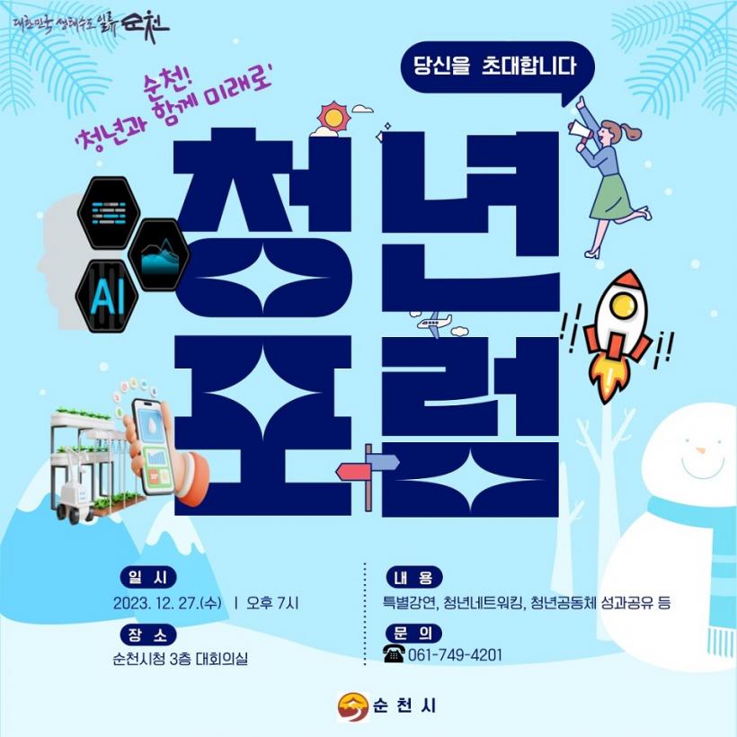 [°ø°£´º½º = ±è¿ëÁø±âÀÚ] ¼øÃµ½Ã(½ÃÀå ³ë°ü±Ô)´Â ¿À´Â 27ÀÏ ¿ÀÈÄ 7½Ã ¼øÃµ½Ãû ´ëȸÀǽǿ¡¼ û³â´Üü, ´ëÇлý µî 100¿© ¸íÀÇ Ã»³âµé°ú ÇÔ²²ÇÏ´Â ¡®¼øÃµ û³â°ø°¨ÀÇ ³¯¡¯ Çà»ç¸¦ °³ÃÖÇÑ´Ù.