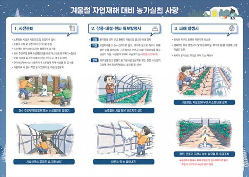 ƯÈ÷ Æø¼³°ú ÇÑÆÄ µî¿¡ ´ëºñÇÑ ´Ü°èº° ´ëÀÀ ¿ä·É, ³óÀÛ¹°°ú ³óÃà»ê½Ã¼³¹° °ü¸®, °í·É³ó µî Ãë¾à³ó¾÷ÀÎ ¾ß¿ÜȰµ¿ ÀÚÁ¦·Î ÀÀ±Þ´ëó ¿ä·ÉÀ» ³ó¾÷Àο¡°Ô ÁýÁß È«º¸Çϰí ÀÖ´Ù.