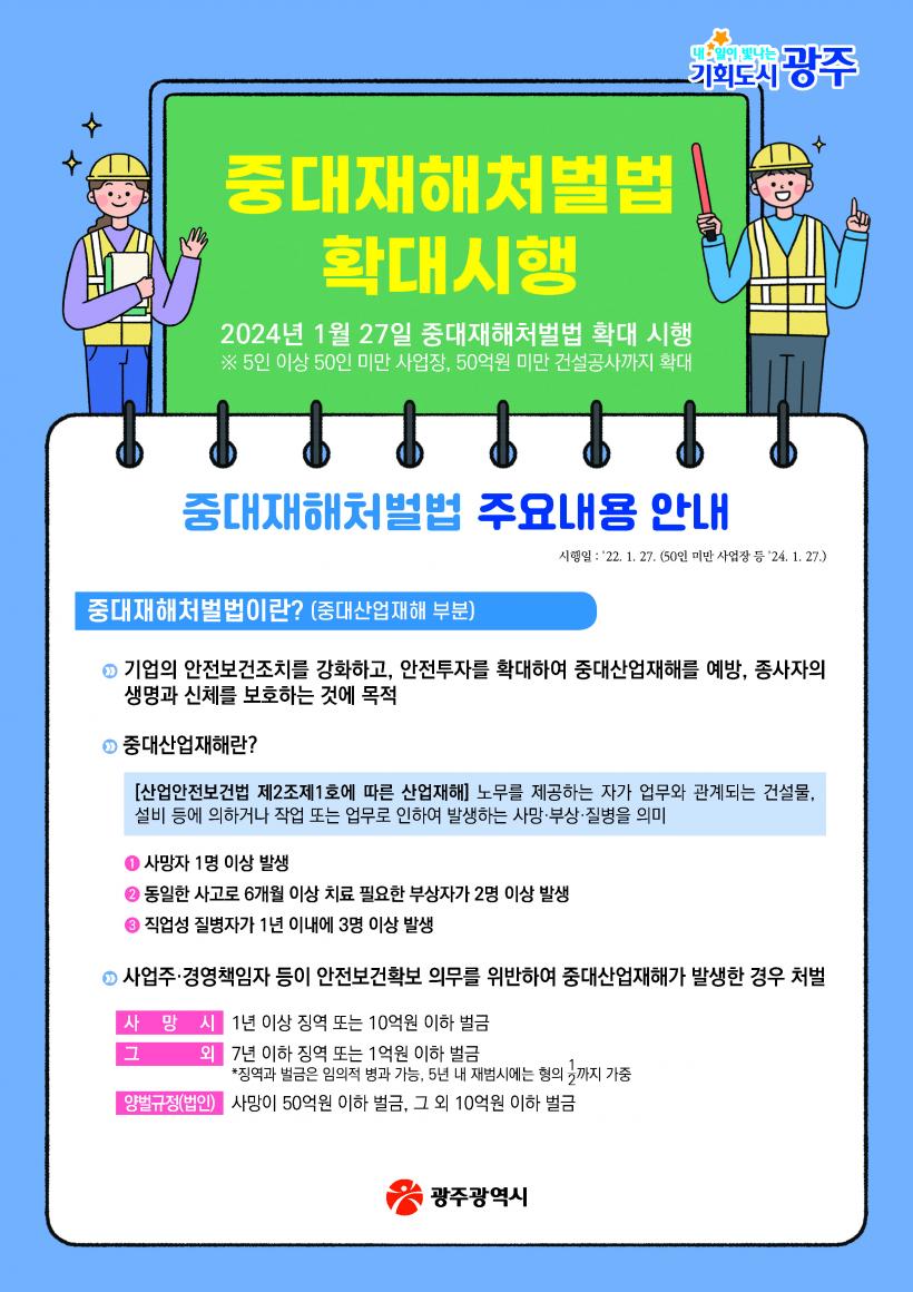 [°ø°£´º½º = ±è¼ö±Ù±âÀÚ] ±¤ÁÖ±¤¿ª½Ã(½ÃÀå °±âÁ¤)´Â 27ÀϺÎÅÍ Áß´ëÀçÇØÃ³¹ú µî¿¡ °üÇÑ ¹ý·üÀÌ »ó½Ã±Ù·ÎÀÚ 50ÀÎ ¹Ì¸¸ »ç¾÷Àå(5~49ÀÎ)±îÁö È®´ë ½ÃÇàµÊ¿¡ µû¶ó °ü°è±â°ü°ú Çù¾÷ÇØ Àû±Ø ´ëÀÀÇÑ´Ù.