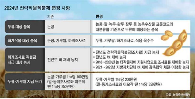 ¿ÃÇØºÎÅÍ´Â ¡®Àü·«ÀÛ¹°Á÷ºÒÁ¦¡¯¿¡ ¼Ö¼±Çß´ø ³ó°¡°¡ ÇÇÇØ°¡ ¾øµµ·Ï ÇϰèÀÛ¹° Áö¿øÀ» È®´ëÇØ ½Ä¿ë¿Á¼ö¼ö ½Å±Ô Ãß°¡(ha´ç 100¸¸ ¿ø), ±âÁ¸ ³íÄáÀº(ha´ç 100¸¸ ¿ø) ³ìµÎ, ÆÏ µîÀ» Æ÷ÇÔÇÑ µÎ·ù(§³´ç 200¿ø)·Î ǰ¸ñÀ» È®´ëÇϰí, Áö±Þ´Ü°¡¸¦ 100¸¸ ¿ø ÀλóÇß´Ù.
