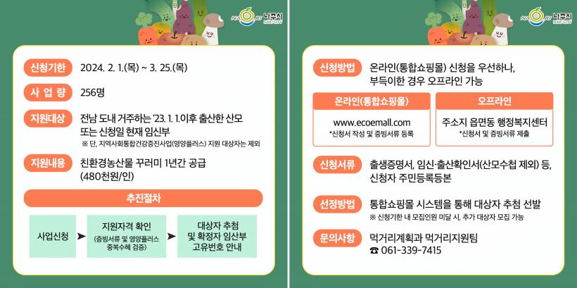 ²Ù·¯¹Ì Áö¿ø»ç¾÷Àº ¿ÃÇØ ÀÓ½ÅÀ» Ç߰ųª Áö³ÇØ Ãâ»êÇÑ »ê¸ð¸¦ ´ë»óÀ¸·Î ÃßÁøÇϸç, ģȯ°æ ³ó»ê¹° ±¸ÀÔ ½Ã Àںδã 20%(9¸¸6000¿ø)¸¦ Á¦¿ÜÇÑ ÃÑ ºñ¿ëÀÇ 80%¸¦ ¿¬°£ ÃÖ´ë 48¸¸¿ø±îÁö Áö¿øÇÑ´Ù.