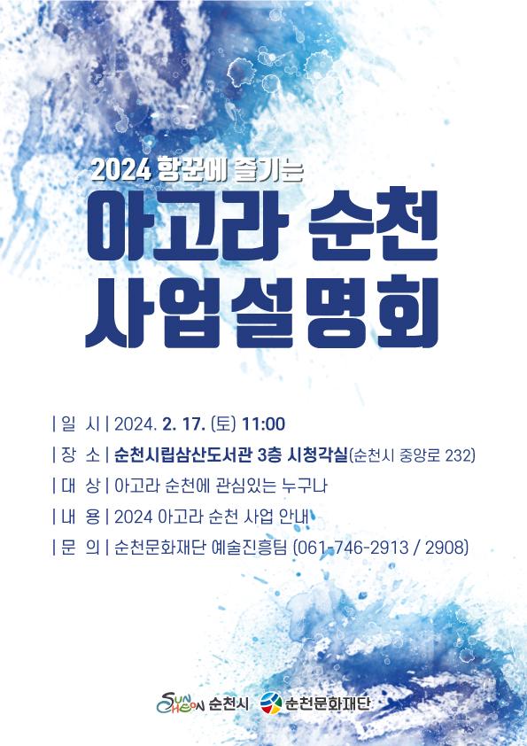 [°ø°£´º½º = ±è¿ëÁø±âÀÚ] ¼øÃµ¹®ÈÀç´Ü(ÀÌ»çÀå ³ë°ü±Ô)Àº ¿À´Â 17ÀÏ 11½Ã, ¼øÃµ½Ã¸³»ï»êµµ¼°ü 3Ãþ ½Ãû°¢½Ç¿¡¼ Áö¿ª¿¹¼úÀΰú ÀÏ¹Ý ½Ã¹ÎÀ» ´ë»óÀ¸·Î ¡®2024 Çײۿ¡ Áñ±â´Â ¾Æ°í¶ó ¼øÃµ¡¯ »ç¾÷¼³¸íȸ¸¦ °³ÃÖÇÑ´Ù°í ¹àÇû´Ù.