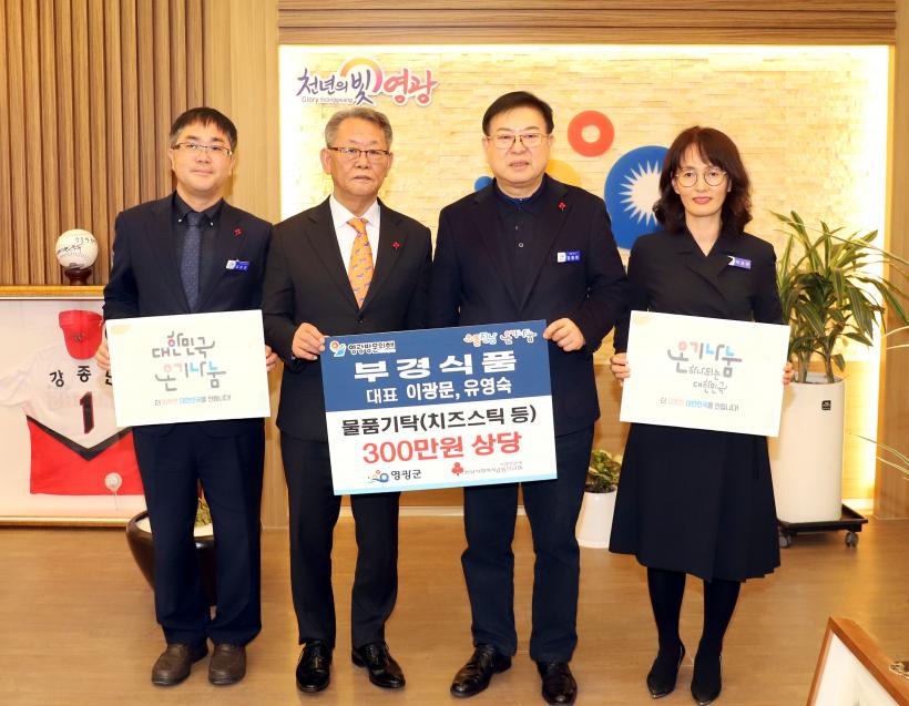 [°ø°£´º½º = ±è¼ö±Ù±âÀÚ] ¢ßºÎ°æ½Äǰ(´ëÇ¥ À̱¤¹®, À¯¿µ¼÷)Àº ¿µ±¤±º(±º¼ö °Á¾¸¸)¿¡ Ä¡Áƽ, Ä¡ÁîÇÖµµ±× µî 300¸¸ ¿ø »ó´çÀÇ ÀÚü »ý»êǰÀ» °ü³» »çȸº¹Áö½Ã¼³À» À§ÇØ Áö³ 21ÀÏ ±âŹÇÏ¿© ¿Â±â³ª´® Ä·ÆäÀο¡ µ¿ÂüÇÏ¿´´Ù.