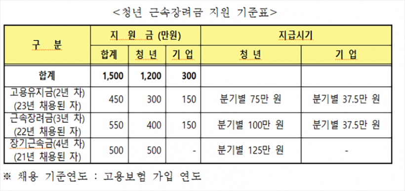 ¼±Á¤ ±â¾÷¿¡´Â ¡â2~3³â Â÷ 150¸¸ ¿øÀ» Áö¿øÇϰí, û³â Ãë¾÷ÀÚÀÇ °æ¿ì ¡â2³â Â÷´Â ¿¬ 300¸¸ ¿ø ¡â3³â Â÷ 400¸¸ ¿ø ¡â4³â Â÷ 500¸¸ ¿øÀ» Áö¿øÇÑ´Ù.