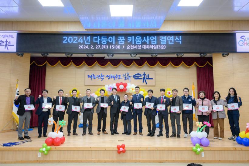 [°ø°£´º½º = ±è¿ëÁø±âÀÚ] ¼øÃµ½Ã(½ÃÀå ³ë°ü±Ô)´Â 27ÀÏ ½Ãû ´ëȸÀǽǿ¡¼ ¡®2024³â ´ÙµÕÀÌ ²Þ Ű¿ò »ç¾÷¡¯ °á¿¬½ÄÀ» °¡Á³´Ù°í ¹àÇû´Ù.