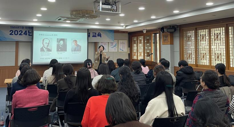 Çѱ¹CS°æ¿µ¿¬±¸¼Ò ±è³ªÀ± ¼ö¼®¿¬±¸¿øÀÌ °»ç·Î ³ª¼± À̹ø ±³À°Àº ¡®SMARTÇÑ ¹Î¿øÀÀ´ë¡¯¶ó´Â ÁÖÁ¦·Î ½º¸ô ÅäÅ©(Small talk), °Å¿ï È¿°ú(Mirroring effect), °æÃ»ÀÇ Á¶°Ç(Attention), °ø°¨ÀÇ ¾ð¾î(Thank you) µî Ä£ÀýÇÑ ¹Î¿ø¿Í ºÒ¸¸ ¹Î¿øÀÎ ´ë󹿹ýÀ» ÁßÁ¡ÀûÀ¸·Î ´Ù·ð´Ù.