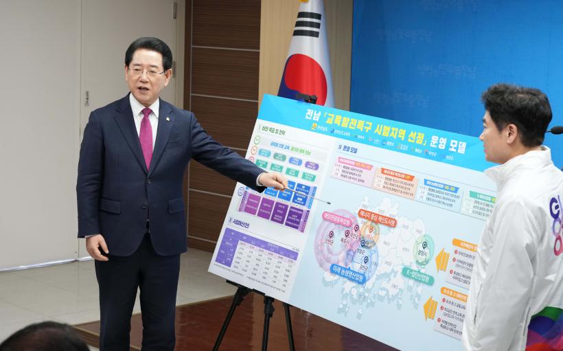 [°ø°£´º½º = ±è¼ö±Ù±âÀÚ ] ±è¿µ·Ï Àü¶ó³²µµÁö»ç¿Í ±è´ëÁß Àü³²µµ±³À°°¨Àº 28ÀÏ ¿ÀÈÄ µµÃ» ºê¸®Çη뿡¼ ±³À°ºÎÀÇ ±³À°¹ßÀüƯ±¸ ½Ã¹üÁö¿ª¿¡ Àü³² 7°³ ½Ã±ºÀÌ ÁöÁ¤µÈ °Í¿¡ ȯ¿µ ÀÔÀåÀ» ¹àÈ÷°í Áö¿ª ±ÕÇü¹ßÀüÀ» ¼±µµÇÒ Àü³²Çü ¸ðµ¨ ÃßÁøÀ» ´ÙÁüÇß´Ù.