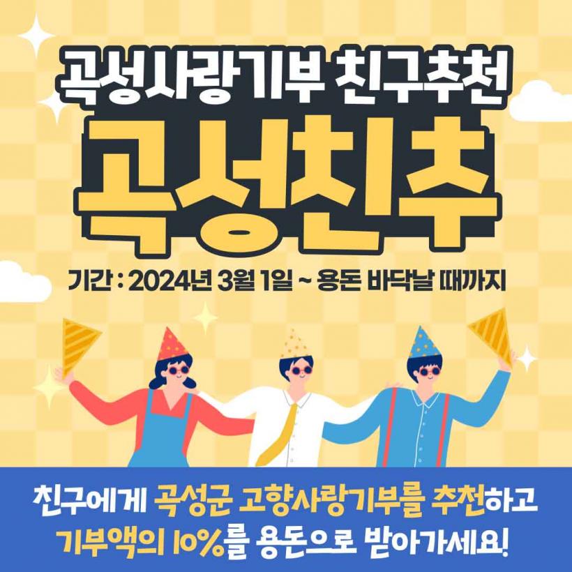 [°ø°£´º½º = ¾ÈÀ翵±âÀÚ] °î¼º±ºÀº ¿À´Â 3¿ù 1ÀϺÎÅÍ °íÇâ»ç¶û±âºÎÁ¦¸¦ Ȱ¼ºÈÇÏ°í ¸ð±Ý¾×À» Áõ´ëÇϱâ À§ÇØ ¡®°î¼ºÄ£Ãß¡¯ À̺¥Æ®¸¦ ½ÃÀÛÇÑ´Ù. ÀÌ À̺¥Æ®´Â °î¼º±ºÀÌ ±âºÎ ¹®È¸¦ Àå·ÁÇϰí Áö¿ª¹ÎÀÇ º¹¸®¸¦ ÁõÁøÇϱâ À§ÇØ ¸¶·ÃÇÑ À̺¥Æ® Áß Çϳª·Î ±âºÎÀÚ¿Í ÃßõÀÎ ¸ðµÎ¿¡°Ô ÇýÅÃÀÌ ÁÖ¾îÁö´Â °ÍÀÌ Æ¯Â¡ÀÌ´Ù.