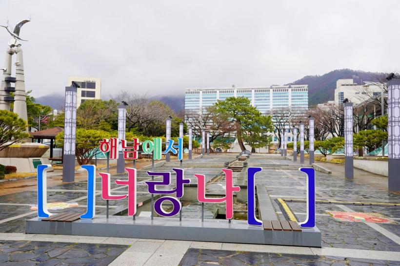 [°ø°£´º½º = Çѵ¿¼ø±âÀÚ] ÇØ³²±ºÀÌ Ã»»ç ¾Õ ±º¹Î±¤Àå¿¡ ¹Ù´ÚºÐ¼ö¸¦ Á¶¼ºÇÑ´Ù.