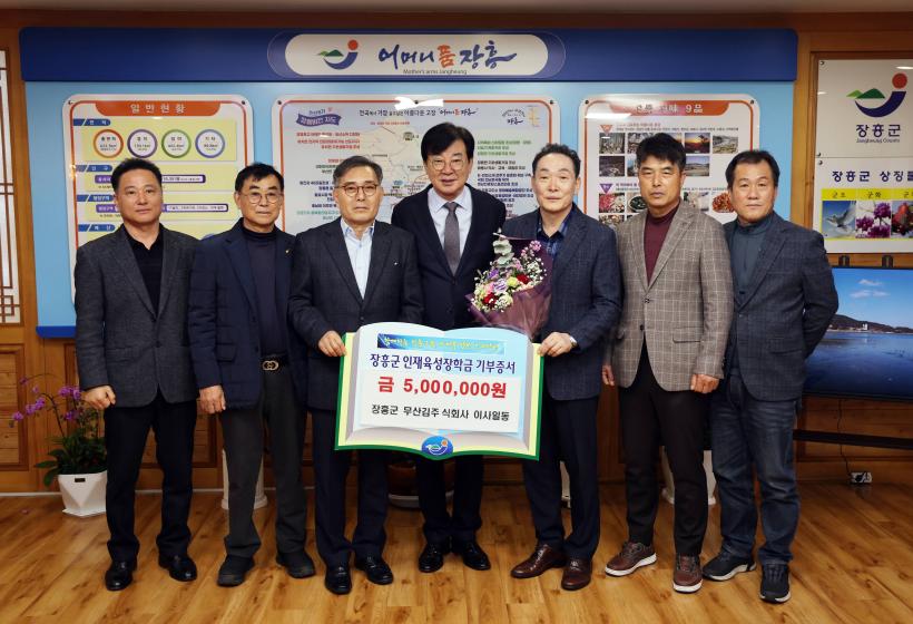 [°ø°£´º½º = ±è¼ö±Ù±âÀÚ] (Àç)ÀåÈﱺÀÎÀçÀ°¼ºÀåÇÐȸ´Â Áö³ 5ÀÏ ÀåÈﱺ¹«»ê±èÁÖ½Äȸ»ç(´ëÇ¥ Àå¿ëÄ¥)¿¡¼ 5¹é¸¸¿øÀÇ ÀåÇбÝÀ» ±âŹÇß´Ù°í ¹àÇû´Ù.