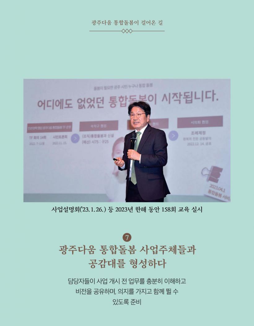 ¶Ç ±¤ÁÖ´Ù¿ò ÅëÇÕµ¹º½ ¼Ò°³, Á¤Ã¥ÀÌ ½ÇÇöµÇ´Â °úÁ¤À» ¼Ò°³ÇÑ ±¤ÁÖ´Ù¿ò ÅëÇÕµ¹º½ÀÌ °É¾î¿Â ±æ µîÀ¸·Î ±¸¼ºµÆ´Ù.
