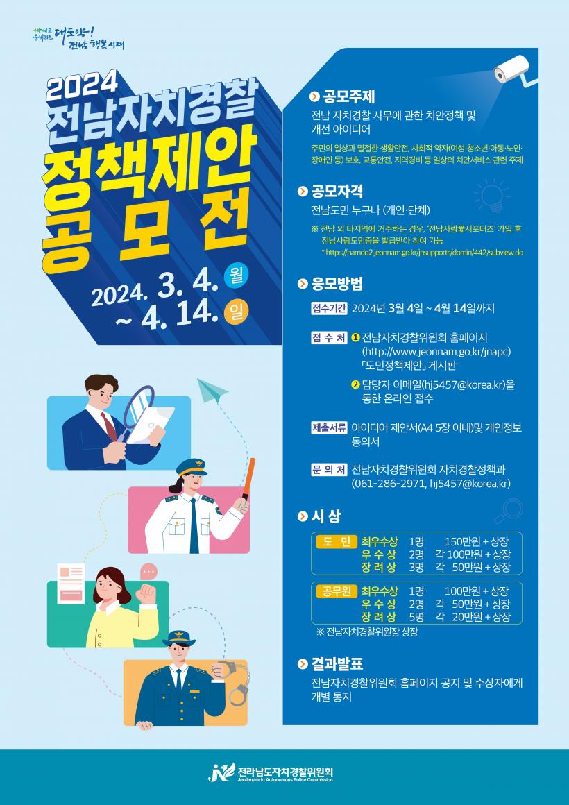 [°ø°£´º½º = ±è¼ö±Ù±âÀÚ] Àü¶ó³²µµÀÚÄ¡°æÂûÀ§¿øÈ¸°¡ µµ¹Î ÀǰßÀ» ¹Ý¿µÇÑ Áö¿ª ¸ÂÃãÇü Ä¡¾È ¼ºñ½º¸¦ À§ÇØ ¿À´Â 4¿ù 14ÀϱîÁö ¡®Àü³²ÀÚÄ¡°æÂû Á¤Ã¥ Á¦¾È °ø¸ðÀü¡¯À» °³ÃÖÇÑ´Ù.