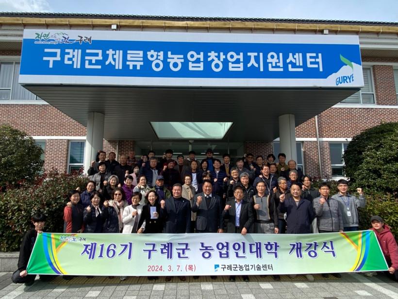 [°ø°£´º½º = ¾ÈÀ翵±âÀÚ] Àü³² ±¸·Ê±ºÀº Áö³ 7ÀÏ Ã¼·ùÇü³ó¾÷â¾÷Áö¿ø¼¾ÅÍ¿¡¼ ±³À°»ý°ú °ü°èÀÚ µî 70¿© ¸íÀÌ Âü¼®ÇÑ °¡¿îµ¥ Á¦16±â ±¸·Ê±º ³ó¾÷ÀÎ ´ëÇÐ °³°½ÄÀ» °¡Á³´Ù°í ¹àÇû´Ù.