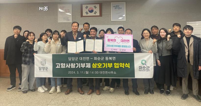 À̹ø Çù¾àÀ» ÅëÇØ °íÇâ»ç¶û±âºÎÁ¦ Ȱ¼ºÈ °ÇÀüÇÑ ±âºÎ¹®È È®»êÀ» À§ÇØ »óÈ£ Çù·ÂÇϱâ·Î ¶æÀ» ¸ð¾ÒÀ¸¸ç, ´ã¾ç±º ´ëÀü¸é Á÷¿ø°ú ȼø±º µ¿º¹¸é Á÷¿ø 15¸íÀÌ °¢ ÁöÀÚü¿¡ 10¸¸ ¿ø¾¿ ÃÑ 300¸¸ ¿øÀ» ±âºÎÇϸç Áö¿ª ¹ßÀüÀ» ÀÀ¿øÇß´Ù.