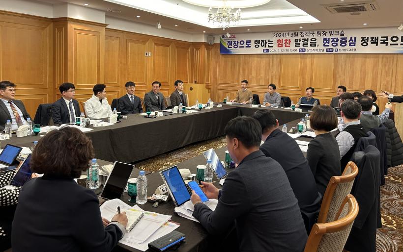 Àü³²±³À°Ã»Àº Áö³ 12ÀÏ ¸ñÆ÷ ¼§±×¸®¾Æ È£ÅÚ¿¡¼ º»Ã» Á¤Ã¥±¹ ±¹¡¤°úÀå ¹× ÆÀÀåµéÀ» ´ë»óÀ¸·Î ¿öÅ©¼óÀ» ¿°í, ¡®ÇöÀå Á᫐ Á¤Ã¥±¹¡¯À¸·Î ³ª¾Æ°¡±â À§ÇÑ °úÁ¦¿Í ¿ªÇÒ¿¡ ´ëÇØ ³íÀÇÇÏ´Â ½Ã°£À» °¡Á³´Ù.