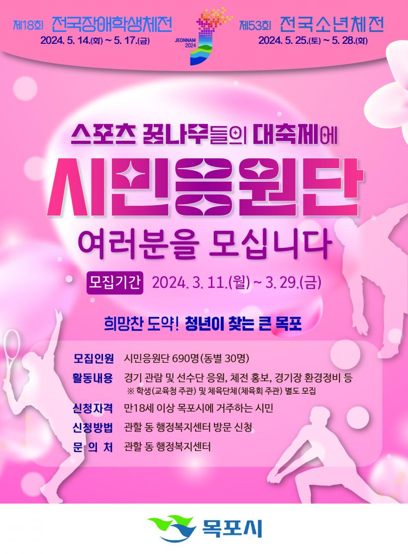 [°ø°£´º½º = Àå¿ÁÁø±âÀÚ ] ¸ñÆ÷½Ã´Â ¿À´Â 5¿ù ¸ñÆ÷°¡ ÁÖ °³ÃÖÁö°¡ µÇ¾î ¿¸®´Â Àü±¹¼Ò³âüÀü°ú Àü±¹Àå¾ÖÇлýüÀüÀÇ ¼º°ø°³ÃÖ¸¦ À§ÇØ ½Ã¹ÎÀÀ¿ø´Ü 690¸íÀ» ¸ðÁýÇÑ´Ù.