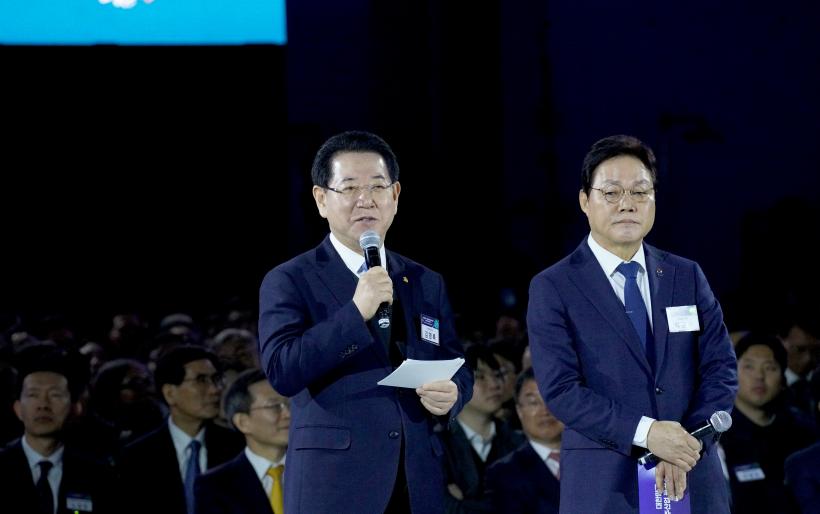¡®´º½ºÆäÀ̽º¡¤¿ìÁÖ°æÁ¦ÀÇ »ï°¢Ã¼Á¦-Àü³²¡¤°æ³²¡¤´ëÀü¡¯À» ½½·Î°ÇÀ¸·Î ¿¸° Ãâ¹ü½Ä¿¡´Â À±¼®¿ ´ëÅë·É, ÀÌÁ¾È£ °ú±âºÎ Àå°ü, ±è¿µ·Ï Àü³²µµÁö»ç, ¹Ú¿Ï¼ö °æ³²µµÁö»ç, ÀÌÀå¿ì ´ëÀü½ÃÀå µî ÁöÀÚü, ±â¾÷, Çаè Àü¹®°¡ µî 450¿© ¸íÀÌ ÇÔ²²Çß´Ù.