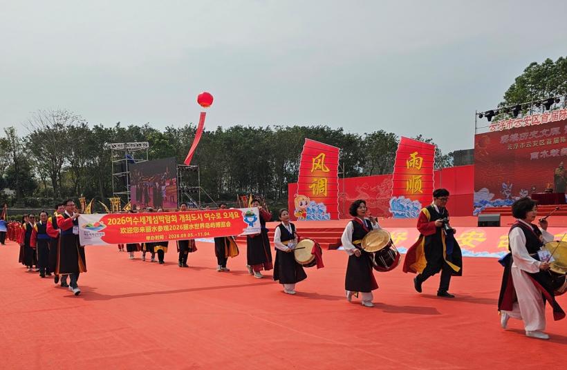 È«º¸´ÜÀº ¿ìµµÇ³¹°ÆÐ¿Í ÇÔ²² ¡®2026 ¿©¼ö¼¼°è¼¶¹Ú¶÷ȸ °³ÃÖµµ½Ã ¿©¼ö·Î ¿À¼¼¿ä(欢çÊ您来丽â©参观2026á¦Í£岛屿ÚÏ览会)¡¯¶ó°í ÀûÈù Çö¼ö¸·À» ÆîÃĵé°í ³ªÅ¸³ª ÇÏÀ̶óÀÌÆ®¸¦ Àå½ÄÇß´Ù.