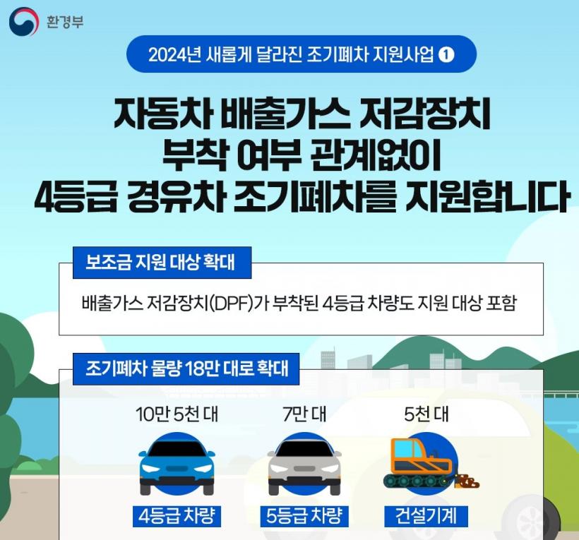 ´ë±â ¿À¿°¹°ÁúÀ» ´Ù·® ¹èÃâÇÏ´Â ³ëÈÄ °æÀ¯Â÷¿Í ³ëÈÄ °Ç¼³±â°è¸¦ ´ë»óÀ¸·Î Á¶±â ÆóÂ÷, ¹èÃâ°¡½º Àú°¨ÀåÄ¡ ºÎÂø µî ÃÑ 1¸¸ 6õ389´ë¿¡ 508¾ï ¿øÀ» Áö¿øÇÑ´Ù.