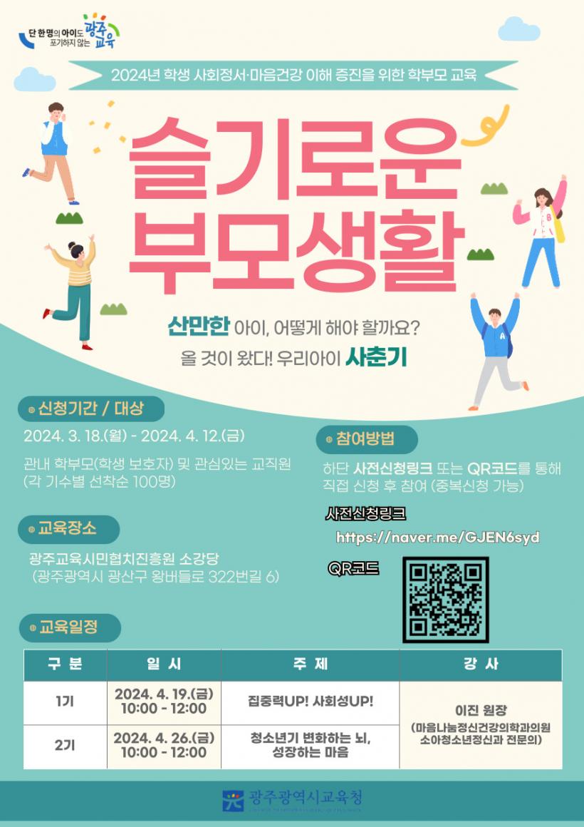 À̹ø ±³À°¿¡ °ü½ÉÀÖ´Â Çкθð(º¸È£ÀÚ)´Â ½Åû ¸µÅ©(https://naver.me/GJEN6syd) ¹× Æ÷½ºÅÍ ³» QRÄڵ带 ÅëÇØ 3¿ù 18ÀÏ ~ 4¿ù 12ÀÏ »çÀü ½Åû°¡´ÉÇÏ´Ù.