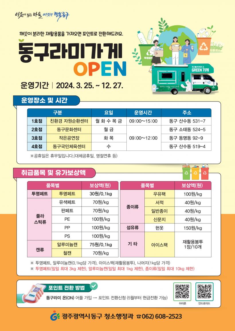 ÁֹεéÀº ÇÃ¶ó½ºÆ½¡¤Äµ¡¤Á¾ÀÌ·ù µî ÀçȰ¿ëǰÀ» ±ú²ýÇÏ°Ô ºÐ¸® ¼ö°ÅÇØ ¡®µ¿±¸¶ó¹Ì °¡°Ô¡¯¿¡ ¹æ¹®Çϸé ǰ¸ñº°·Î ¹«°Ô¸¦ ÃøÁ¤Çϰí, Æ÷ÀÎÆ®·Î ÀüȯÇÑ ÈÄ ¡®µ¿±¸¶ó¹Ì ¿Â(ON) ¾îÇá¯À» ÅëÇØ Çö±ÝÀ¸·Î º¸»ó¹ÞÀ» ¼ö ÀÖ´Ù.