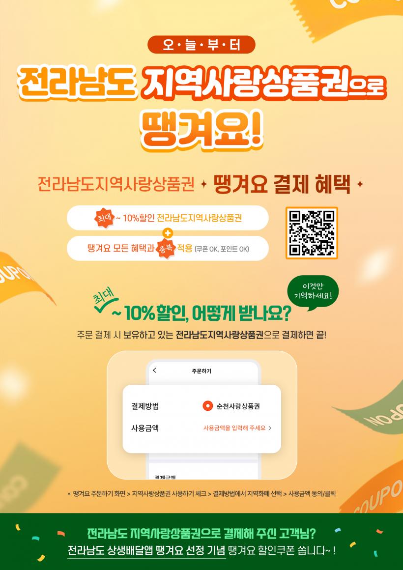 Áö¿ª»ç¶û»óǰ±Ç ¿¬µ¿¿¡ ¸ÂÃç ¡®¶¯°Ü¿ä¡¯´Â ´Ù¾çÇÑ À̺¥Æ®¸¦ ÃßÁøÇÒ °èȹÀÌ´Ù. ¿À´Â 4¿ù 14ÀϱîÁö Áö¿ª»ç¶û»óǰ±ÇÀ¸·Î °áÁ¦ ½Ã °áÁ¦ ±Ý¾×¿¡ µû¶ó ÃÖ´ë 5õ ¿øÀÇ ÇÒÀÎÄíÆùÀ» ¹ÞÀ» ¼ö ÀÖÀ¸¸ç, 3¿ù ÇÑ ´Þ °£ ¸ÔŶ縰Áö À̺¥Æ®µµ ÁøÇàÇÑ´Ù. ƯÁ¤ ºê·£µå ÁÖ¹® ´Þ¼º ½Ã ÃÖ´ë 1¸¸ ¿øÀÇ ÇÒÀÎÄíÆùÀ» Á¦°øÇÑ´Ù.