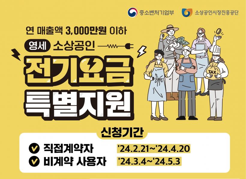 »ç¾÷ Áö¿ø ´ë»óÀº 2023³â ÀÌÀü °³¾÷ÇØ ÇöÀç »ç¾÷À» ¿î¿µ ÁßÀÎ ºÎ°¡¼¼ ½Å°í ¸ÅÃâ¾× 3õ¸¸ ¿ø ÀÌÇÏ »ç¾÷ÀÚ´Ù. Àü±â¿ä±Ý °è¾à ÇüÅ Áß Áö¿ø»ç¾÷ ´ë»óÀº ¡ãÀÏ¹Ý¿ë ¡ã»ê¾÷¿ë ¡ã³ó»ç¿ë ¡ã±³À°¿ë ȤÀº ¡ãÁÖÅÿë Áß ºñÁÖ°Å¿ë Àü±â¿ä±ÝÀ» ºÎ´ãÇÏ´Â »ç¾÷ÀÚ´Ù.