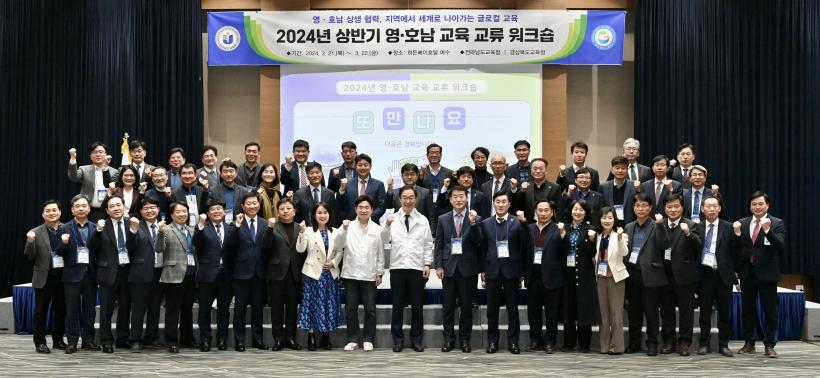[°ø°£´º½º = ±è¼ö±Ù±âÀÚ] Àü¶ó³²µµ±³À°Ã»(±³À°°¨ ±è´ëÁß)°ú °æ»óºÏµµ±³À°Ã»(±³À°°¨ ÀÓÁ¾½Ä)Àº 21~22ÀÏ È÷µçº£ÀÌÈ£ÅÚ ¿©¼ö¿¡¼ ¡®2024³â »ó¹Ý±â ¿µÈ£³² ±³À° ±³·ù¡¯ÀÚ¸®¸¦ °®°í, Áö¿ª Áß½ÉÀÇ ±Û·ÎÄà ¹Ì·¡±³À° ½ÇÇö ¹æ¾ÈÀ» ³íÀÇÇß´Ù.