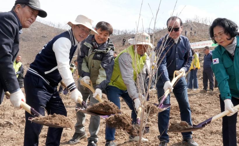 ³ª¹« ½É±â Çà»ç¿¡¼± »êºÒ ÇÇÇØÁö°¡ ´Ù½Ã Ǫ¸£¸¥ ½£À¸·Î ÀÚ¶ó±æ ±â¿øÇÏ¸ç »ê¼öÀ¯³ª¹«, »êµþ³ª¹«, ¹è·Õ³ª¹« 3õ ±×·ç¸¦ ½É¾ú´Ù. ÀÌ»êÈź¼Ò Èí¼ö´Â ¹°·Ð ¾Æ¸§´Ù¿î Èñ¸ÁÀÇ ½£À¸·Î °Åµì³ª´Â ¸¶Áß¹°ÀÌ µÅ »ê¸² °ü±¤ÀÚ¿øÀ¸·ÎÀÇ È°¿ëÀÌ ±â´ëµÈ´Ù.