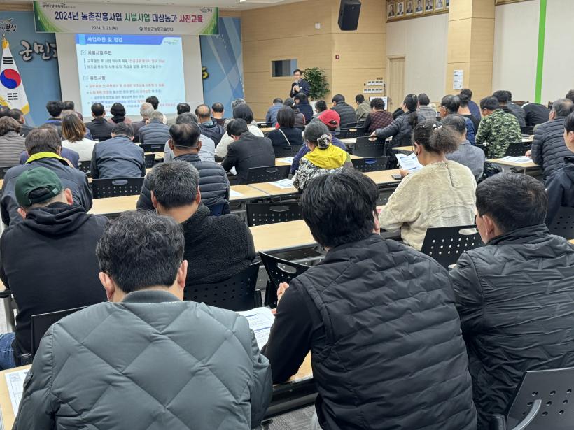 ¿øÈ°ÇÑ »ç¾÷ ÃßÁøÀ» À§ÇØ Áö³ 21ÀÏ ³ó¾÷±â¼ú¼¾ÅÍ ´ë°´ç¿¡¼ À¾¸é ³ó¹Î»ó´ã¼ÒÀåÀ» Æ÷ÇÔÇÑ 2024³â ³óÃÌÁøÈï ½Ã¹ü»ç¾÷ ´ë»óÀÚ 73¸íÀ» ´ë»óÀ¸·Î ¡®³óÃÌÁøÈï ½Ã¹ü»ç¾÷ »çÀü±³À°¡¯À» ½Ç½ÃÇß´Ù.