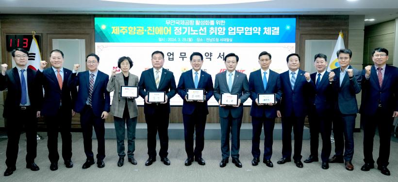 [°ø°£´º½º = ±è¼ö±Ù±âÀÚ ] Àü¶ó³²µµ´Â 25ÀÏ ¹«¾È±º, Á¦ÁÖÇ×°ø, Áø¿¡¾î, Çѱ¹°øÇ×°ø»ç¿Í ÇÔ²² ¹«¾È±¹Á¦°øÇ× Á¤±â³ë¼± ÃëÇ× ¾÷¹«Çù¾àÀ» Çß´Ù. ÀÌ¿¡ µû¶ó ¹«¾È±¹Á¦°øÇ×ÀÌ ¸í½Ç °øÈ÷ ¼³²±Ç °ÅÁ¡°øÇ×À¸·Î ÀÚ¸®¸Å±èÇϱâ À§ÇØ ÈûÂ÷°Ô ºñ»óÇϰí ÀÖ´Ù.