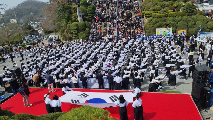±â³ä½Ä ÈÄ¿¡´Â µ¶¸³¸¸¼¼¿îµ¿ ´ç½Ã¸¦ ÀçÇöÇÏ´Â ÀÇ»óÀ» ÀÔÀº Á¤¸í¿©ÀÚÁß¡¤°íµîÇб³ ÇлýµéÀ» Áß½ÉÀ¸·Î ¸ñÆ÷ ½Ã³»¿¡¼ °Å¸®ÇàÁøÀÌ ÁøÇàµÇ¾ú´Ù.