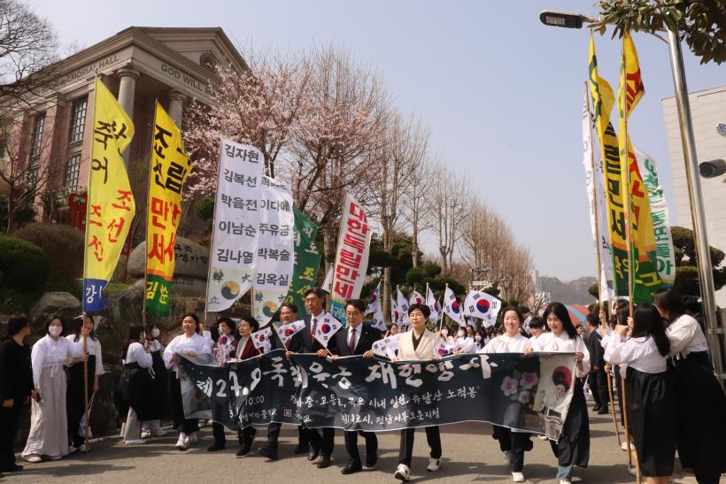 [°ø°£´º½º = Àå¿ÁÁø±âÀÚ] ±¹°¡º¸ÈƺΠÀü³²¼ºÎº¸ÈÆÁöû(ÁöûÀå ÀÌÇâ¼÷)°ú ¸ñÆ÷½Ã¿¡¼ ÈÄ¿øÇÏ°í ¸ñÆ÷Á¤¸í¿©ÀÚÁß¡¤°íµîÇб³°¡ ÁÖÃÖÇÏ´Â Á¦23ȸ ¡®4¡¤8µ¶¸³¸¸¼¼¿îµ¿ ÀçÇöÇà»ç¡¯°¡ 3¿ù 30ÀÏ ¸ñÆ÷ Á¤¸í¿©ÀÚÁß¡¤°íµîÇб³, ¸ñÆ÷ ½Ã³» ÀÏ¿ø ¹× À¯´Þ»ê ³ëÀûºÀ¿¡¼ ¿·È´Ù.