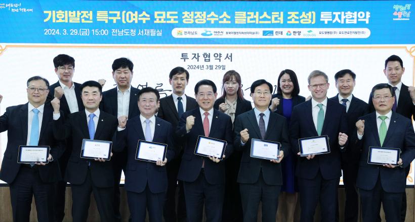 [°ø°£´º½º = ±è¼ö±Ù±âÀÚ] Àü¶ó³²µµ´Â Áö³ 29ÀÏ µµÃ» ¼ÀçÇʽǿ¡¼ ¿©¼ö ¹¦µµ¿¡ ¼ö¼Ò»ê¾÷ Ŭ·¯½ºÅÍ Á¶¼ºÀ» À§ÇØ 5°³ ±â¾÷°ú 3Á¶ 9õ200¾ï ¿ø ±Ô¸ðÀÇ ±âȸ¹ßÀüƯ±¸(ûÁ¤¼ö¼Ò Ŭ·¯½ºÅÍ Á¶¼º) ÅõÀÚÇù¾àÀ» Çß´Ù°í ¹àÇû´Ù.