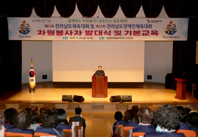 [°ø°£´º½º = ±è¼ö±Ù±âÀÚ ] ¿µ±¤±º(±º¼ö °Á¾¸¸)Àº ¿À´Â 4¿ù°ú 5¿ù¿¡ ¿¸®´Â Á¦63ȸ Àü¶ó³²µµÃ¼À°´ëȸ¿Í Á¦32ȸ Àü¶ó³²µµÀå¾ÖÀÎüÀ°´ëȸÀÇ ¼º°øÀûÀÎ °³ÃÖ¸¦ À§ÇÏ¿© ÀÚ¿øºÀ»çÀÚ ¹ß´ë½ÄÀ» 3¿ù 29ÀÏ ¿µ±¤¹®È¿¹¼úÀÇÀü´ç ¼Ò°ø¿¬Àå¿¡¼ °³ÃÖÇß´Ù.